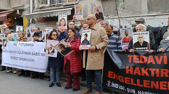 İHD İstanbul Şubesi’nin bu haftaki “F Oturması” eyleminde, yüzde 96 engelli 75 yaşındaki ağır hasta tutsak Süleyman Sabri Mavi’nin durumuna dikkat...